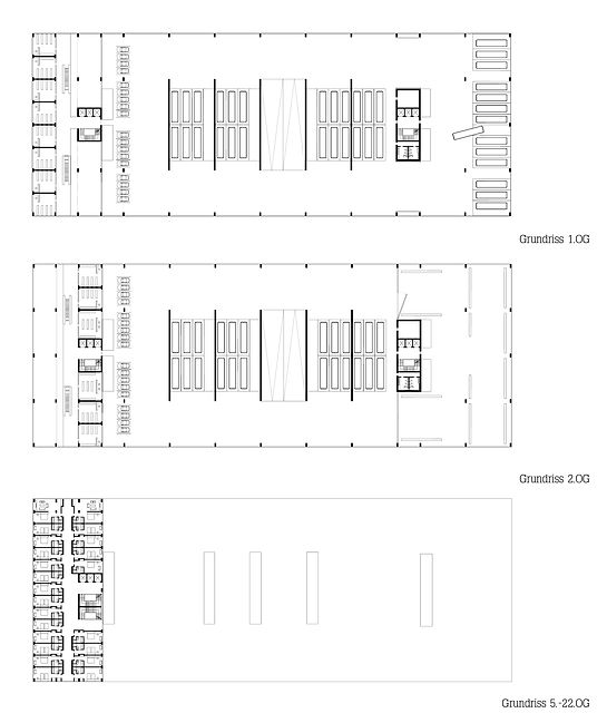 Das Thema BUSting in Berlin beschäftigt sich mit der Frage, ob die Parkhäuser im Stadtzentrum mehr als nur eine Parkfläche sein können? Oder können die Parkhäuser zu den profansten Orten einer Stadt gehören?! Das Thema bezieht sich auf jedem Fall auf den touristischen Busen. Die Lage in der Nähe von Alexandarplatz, also Berlin Mitte, ermöglicht, dass das Busparkhaus eine neue Urbaneerlebniss bietet. Um zu Busmobilität eine ganz neue Bedeutung zu geben, wurden auch andere touristische Komponente beigebracht. Also wir reden jetzt über einem Hybride. Der Struktur von diesem Hybride sollte Angebot an Pakrhaus für Busen, Hotel und andere touristische sowie urbane und öffentliche Angebote bieten. Um die Barriere zwischen sowieso zwei unterschiedliche Teile von Berlin zu vermeiden, wurde das Erdgeschoss als eine Kommunikationsebene betrachtet. Der Grundriss ist horizontal aufgeteilt in einem Raster. Der Grundrissaufteilung spiegelt sich nach aussen auch. Die ganze Aufteilung in Form von Streifen mit unterschiedlichen Funktionen, impliziert die Komunikation des ganzes Objektes. Im Erdgeschoss befindet sich also die Ankunft und Abfahrt von den Busen, mit dem direkten Zugang zum Hotel, Einkafus- und Rent-a-Car und andere touristische Inhalte. Im oberen Geschossen entsteht es neben parken, die Möglichkeit, die Fläche als Ausstellungsort bzw. Event oder Partyzone usw. zu nutzen im Laufe des Tages, der Woche usw. Der vertikale Körper, betont seine Vertikalität über 24 Geschossen und es besteht sich aus den Hotelzimmern, wobei der Gebäudeabschluss ist mit dem Restaurant auf der letzte Etage umgefasst.