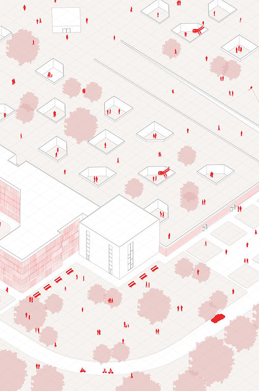 Sveučilišna bolnica Zagreb ist ein Gebäude, das in der kroatische Gesellschaft viele Diskussionen lange Zeit schon anregt. Das bezieht sich nicht nur auf den Bereich der Gesundheit, sondern auf alle anderen Aspekte des sozialen Lebens. Das Objekt der Uniklinik in Zagreb spricht nicht nur also über den Zeitgeist des früheren kommunistischen Regimes und über das Leben in sozialistisch organisierten Gesellschaft, sondern es lässt auch genug Material zum Hinterfragen der heutigen politischen und ökonomischen Situation in der selbständigen Republik Kroatien. Diese Arbeit sollte auf die Frage: “Wie konnte sich eines der hochwertigsten Objekte der soziale Architektur zu einer Ruine umwandeln?” antworten. Diese Arbeit schlägt einen neuen Entwurf für ein neues und revitalisiertes Objekt der Uniklinik in Zagreb vor, sowie seine Umwandlung in einen grossen medizinischen Campus. Gleichzeitg versucht diese Arbeit einen Vergleich zwischen der Bedeutung der “Krankehäuser der Zukunft” damals und heute zu machen, sowie das Thema über die Bedeutung der heilende Architektur zu bearbeiten und in dem Entwurf zu implentieren. Nach der Analyse des gesamtes Komplexes der Uniklinik in Zagreb, wurden einige Lücken festgelegt, die speziell im heutigen Kontext anders formuliert würden. Die längsgerichtete Stationsgebäuden sind nördlich orientiert und dadurch für eine längere Aufenthalt der Patienten nicht besonderes gut geeignet. Obwohl die gesamte Kommunikation zwischen die Stationen über einen Hauptkorridor gut funktioniert, ist dieser sehr lang und führt zu einer sehr langen Kommunikation zwischen Anfangs- und Schlussteil des Komplexes. Im ersten Schritt wurden also die Stationshöhen auf gleichem Niveau untergebracht, d.h. auf vier Stöcke um keinen überdimensionierten Eindruck auf den Besucher zuzulassen, sondern die große Baumasse zu verfeinern. Durch die Entfernung der zwei seitlich positionierten Stationsgebäude und die Verlängerung der Stützenstruktur im Erdgeschoßbereich des Krankenhauses würden die übergebliebene Stationen auf die andere Seite gespiegelt, womit ein geschlossener und kompakter Baukörper geschafft wurde. Die “Geschlossenheit” der entstandenen Baukörper ermöglicht, dass zwischen zwei vertikalen Baukörper ein Dachgarten umschlossen würde. Dieser Dachgarten impliziert gleichzeitig eine städtebauliche Intervention, da er sich durch zwei Rampen mit einer für den gesamten Stadtteil nutzbaren Parklandschaft verbindet und eine schöne heimische Atmosphäre ins Innere des Objektes transferiert. Der entstandene Dachgarten ist also nicht nur ein Zwischenraum der zwei vertikalen Baukörper, sondern hat die Funktion eines gewissen Treffpunkts für die intensive soziale Interaktion zwischen den PatientInnen und der Gemeinschaft. In neuen errichteten Stationen an der südliche Seite des Komplexes werden neue Pflegestationen für die PatientInnen untergebracht. Die Pflegestationen werden nicht nur energetisch, sondern auch gestalterisch modernisiert wobei die Grundfiguration trotzdem erhalten bleibt. Da sich der Komplex in ein großes medizinisches Campus umwandelt, ist daher auch wichtig, eine entsprechende Unterkunft für alle zukünftigen Beteiligten zu organisieren. Deswegen bekommen die bestehenden Stationsgebäude eine neue Funktion und zwar den Aufenthalt für die StudentInnen. Unter dem Dachgarten befindet sich die aktive Erdgeschoßbereich. Dieses Teil des Komplexes wurde in vier Quadranten aufgeteilt, um die Klarheit des großen Komplex insgesamt zu erhalten, wobei jeder Quadrant bestimmte Funktionen erfüllt.